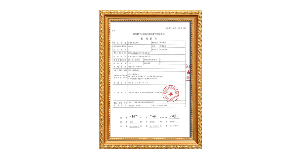 冰蠶纖維無紡布檢測報告